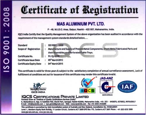 In the year 1998, company awarded an ISO 9002 Certification for Quality System for our Products. The Company has now well set and Live Quality System in operation. To achieve & maintain the system company has well experienced and trained workmen to operate these machines. An adequate training is given to the staff for Quality System Operations by the company's senior staff and managers. The Company is supplying the automotive parts (fabricated & pressed) to Automobile Industry, and Cable Trays to electrical, chemical industries. In the recent years company has developed well and planning to diversify in to the other product areas.